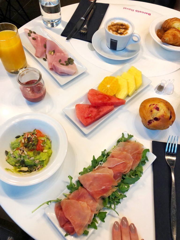 Um gut gestärkt unsere Tour durch die Stadt starten zu können ist das Frühstück für uns beide meistens das allerwichtigste an einem Hotel! Schlechtes Frühstück gleich schlechtes Hotel lautet meine Devise! 😉 Im Barcelo Raval sind wir aber voll und ganz auf unsere Kosten gekommen. Der Schinken und die Wurst war super fein und wir konnten garnicht mehr aufhören alle Aufstriche (von Guacamole bis Humus war alles dabei) auszuprobieren. In der Früh gab es dann auch die leckere Tomatenmischung, sodass wir uns unser spanisches Tomatenbrot selbst machen konnten!