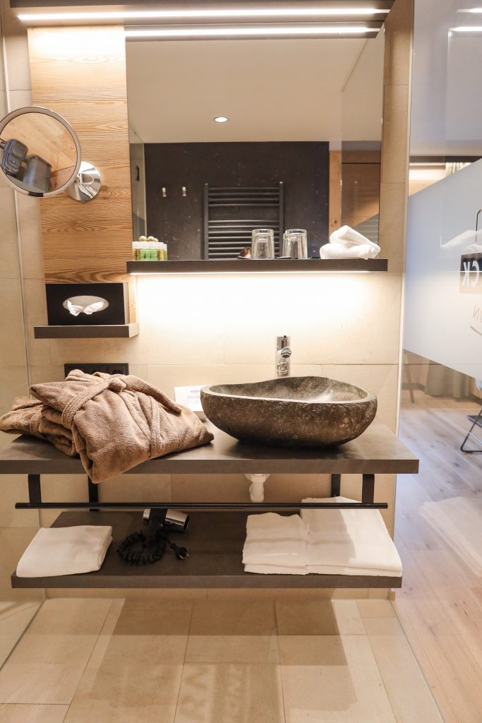 Das Interior ist hier eine Mischung aus gemütlicher, rustikaler Tradition und modernen Designelementen sowie Naturfarben und -Materialien. Die Zimmer und Suiten bieten viel Platz, um einen ganz persönlichen Rückzugsort zu finden und uns war schnell klar, dass hier ein unvergessliches Urlaubserlebnis auf uns warten würde. Den Ausblick auf die Bergwelt haben wir am liebsten von unserer Kuschelecke aus genossen!