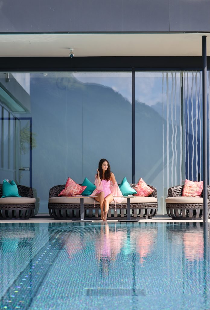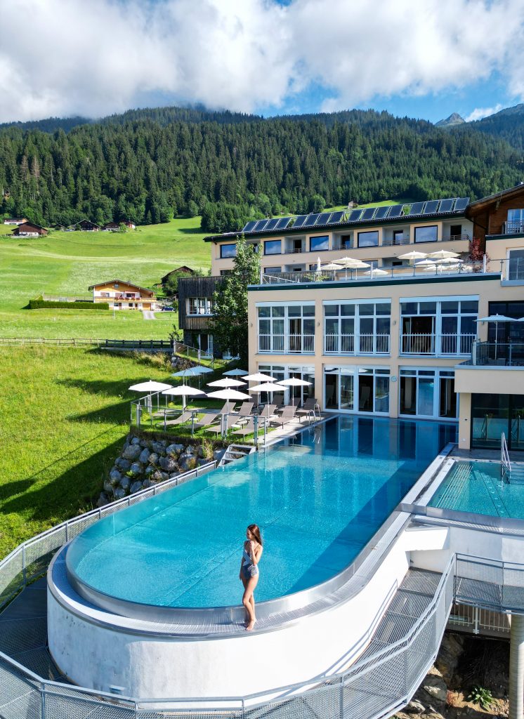 Bei der Ankunft wird man mit einem Glas Sekt oder Saft begrüßt und fühlt sich sofort willkommen und gut aufgehoben. Das Personal ist nicht nur kompetent und höflich, sondern richtig herzlich. Man merkt sofort, dass hier jeder seinen Beruf mit viel Leidenschaft ausübt. Das Hotel ist seit drei Generationen familiengeführt und hat somit eine lange Tradition hinter sich. Genau diese Leidenschaft des Gastgeber-Seins, die Liebe zum Detail und die Verbundenheit zur Region spürt man hier als Gast ganz klar. Die starke Verbindung zur Heimat kommt kulinarisch mit regionalen Kostbarkeiten, im Wellnessbereich durch Behandlungen mit erlesenen Kräuterölen und durch ein großes, tägliches Aktivprogramm in den Bergen zum Ausdruck.