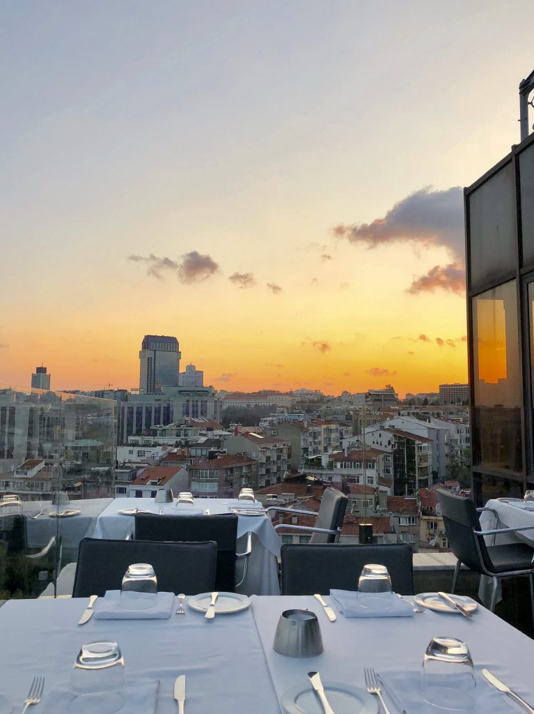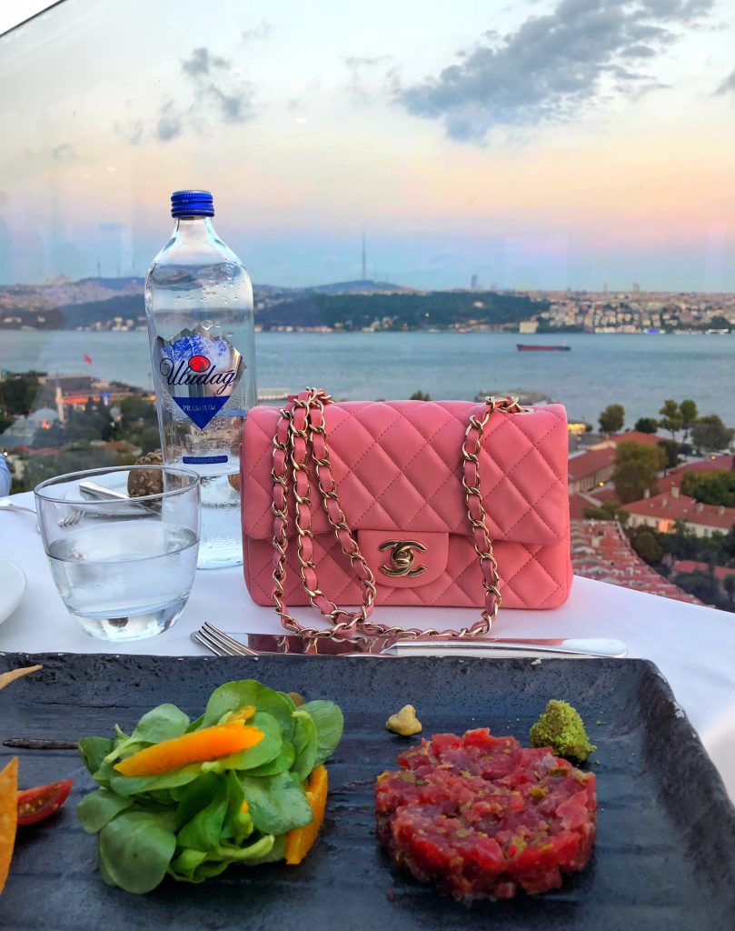 - Ein Hauptgrund warum ich die Stadt so sehr liebe, sind die vielen Restaurants & Clubs mit unglaublichem Blick auf den Bosporus und die Brücken zwischen Europa und Asien, die nachts beleuchtet sind. Ich kenne jedoch nur ein Lokal von dem aus man beide Brücken auf einmal sehen kann. Es liegt außerhalb der touristischen Viertel auf einem Hügel: Das Ulus 29! Aufgrund der Lage kann man es nur mit dem Auto erreichen und muss etwas Zeit einplanen. Doch der Ausblick entschädigt die Anreise ;-)! Wenn man das Restaurant betritt meint man in einer modernen Ferienvilla zu stehen. Die Tische sind festlich eingedeckt und es herrscht eine tolle Atmosphäre. Das Ulus 29 gehört zu den „World´s finest Clubs“ und man kann dort hervorragend traditionelle Küche ausprobieren. Ich habe dort mein bisher bestes Kebab (dünn abgeschnittenes Kalb- oder Lammfleisch mit Fladenbrot, Joghurt, gegrillten Paprika, Tomaten und zerlassener Butter) gegessen.